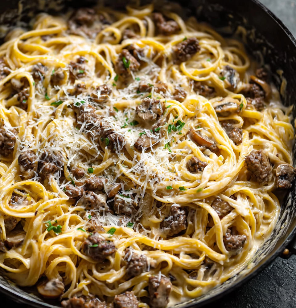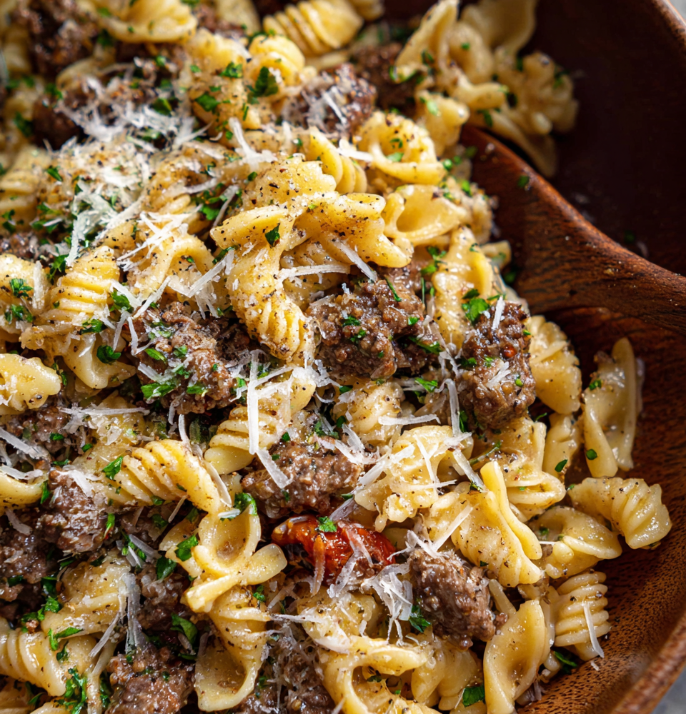 One-Pot Creamy Beef and Garlic Butter Pasta