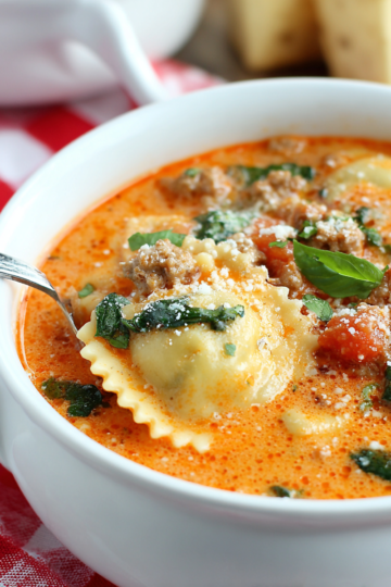 This Creamy Tuscan Ravioli Soup is loaded with pillowy cheese ravioli, Italian sausage, sun-dried tomatoes, spinach, and the most incredible creamy broth you have ever tasted. It comes together in about 30 minutes and is the ultimate cozy weeknight dinner! A Deliciously Easy Tuscan Ravioli […]