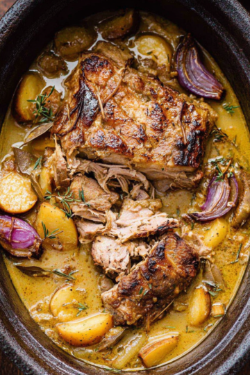 This Slow Cooker Apple Cider Pork Roast is fall-apart tender, packed with warm savory-sweet flavor, and practically makes itself! Juicy pork shoulder braised low and slow in apple cider, garlic, and herbs — served with a rich, glossy pan gravy that is absolutely incredible over […]