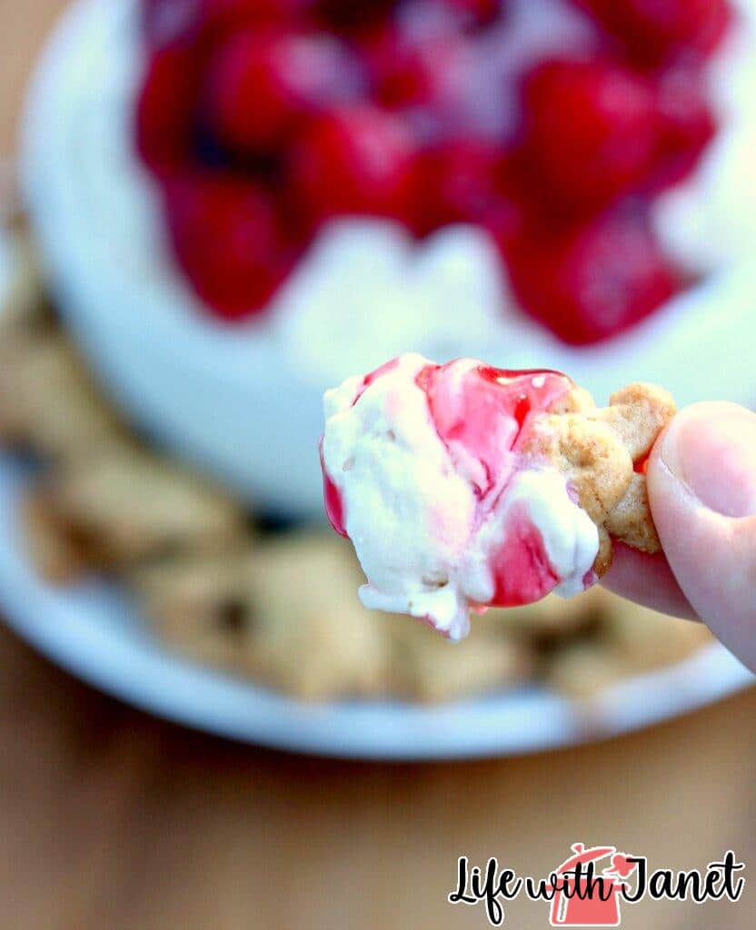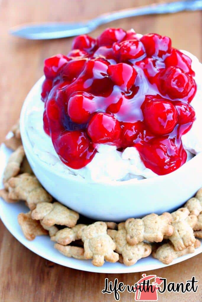 - Top with cherry pie filling and serve with graham crackers. Watch it disappear