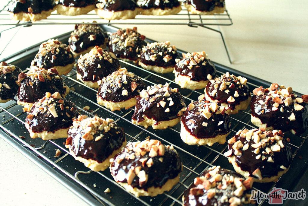 Now, let’s get to dressing these things. First, take them for a dip in the ganache (that’s the chocolate we just made).