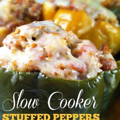 Today, I made stuffed peppers in the slow cooker. This was actually the very first time I have ever had stuffed peppers. Can you believe that?! And, wow, have I ever been missing out! This recipe is definitely going in the vault for future reference! Just look at all that beautiful stuffing…mmmm!