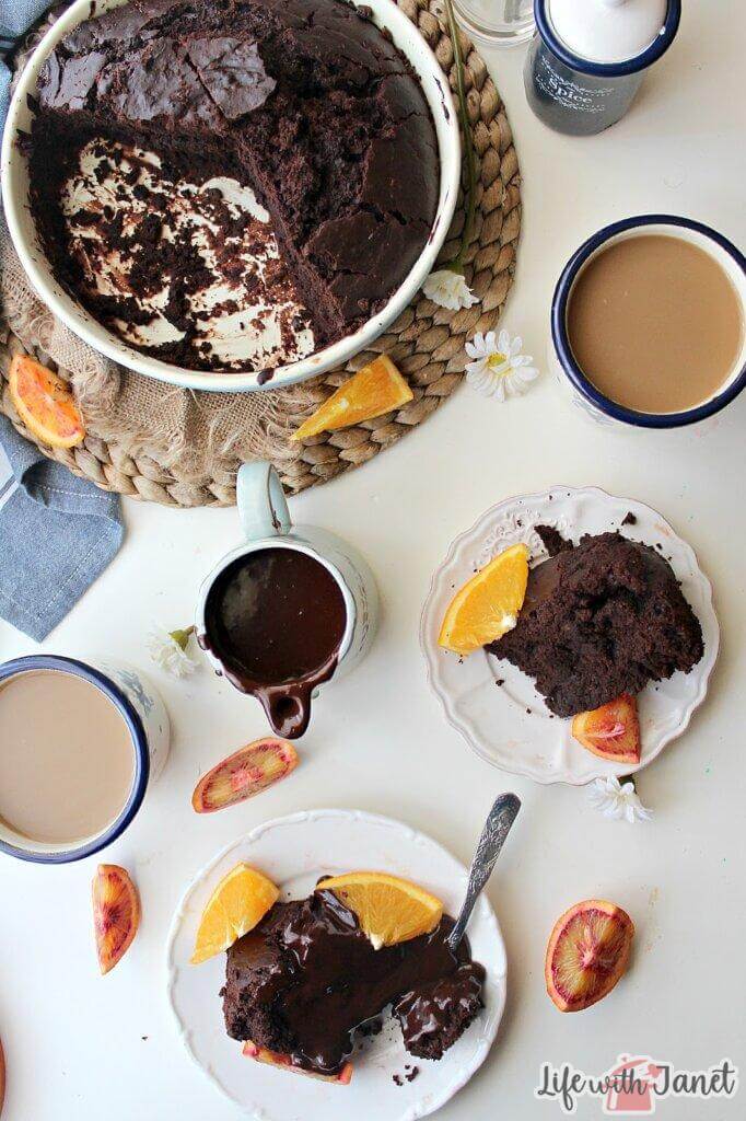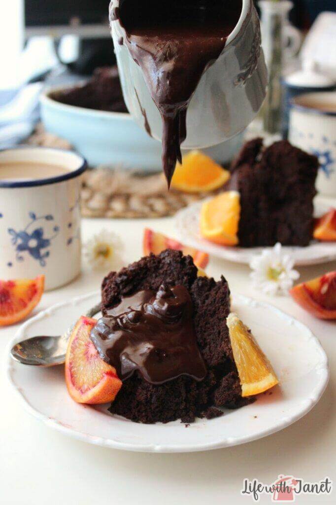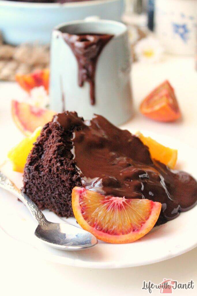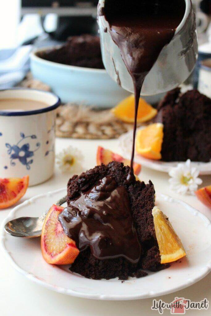 Call it what you want; this choco-orange sauce is delicious. So rich and decadent that it makes the perfect complement to such a cake.