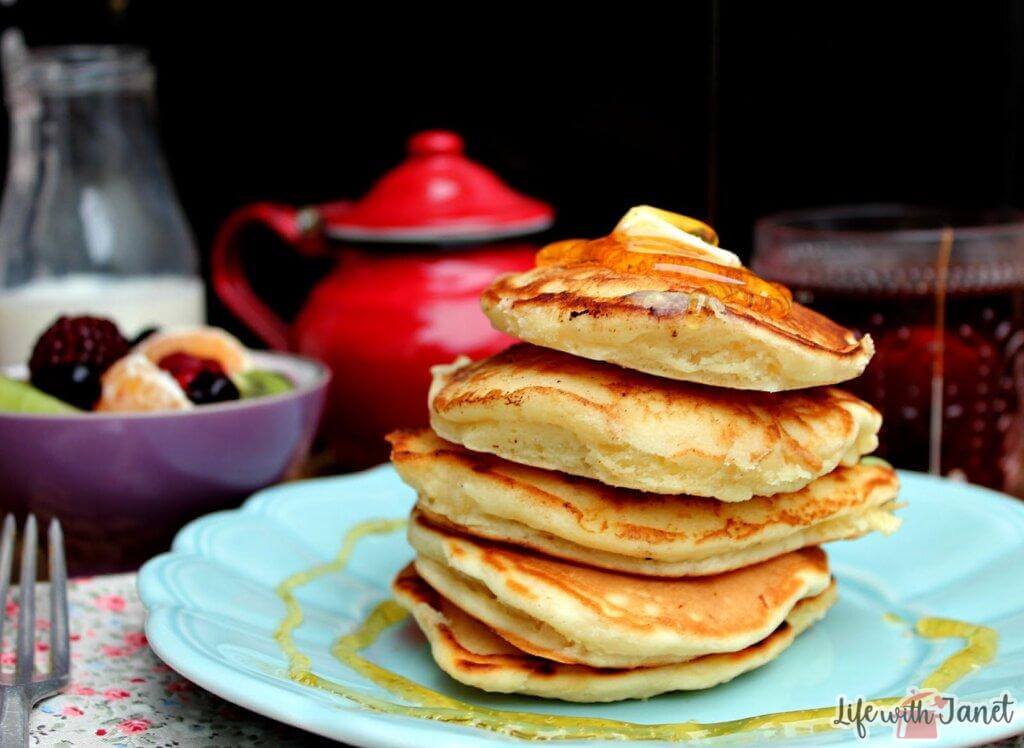 I had been looking for the perfect pancake recipe ever since I started cooking a year ago now, and these really fit the bill. The search is over, guys! I’ve tried lots of delicious recipes over this year: apple pie pancakes, chocolate chip pancakes, cinnamon roll pancakes, brownie batter pancakes… BUT these are the best-est ones I’ve ever put into my mouth. These are mom & brother approved, and they’d be dad-approved too if he ate sweets, which he doesn’t (seriously, I can’t understand trhese people who dislike dessert like no but it’s ok because there’s more for me that way *evil laugh*). Anyway, everybody adored these at home and I’m sure that if you guys try these, your families will love them as well.
