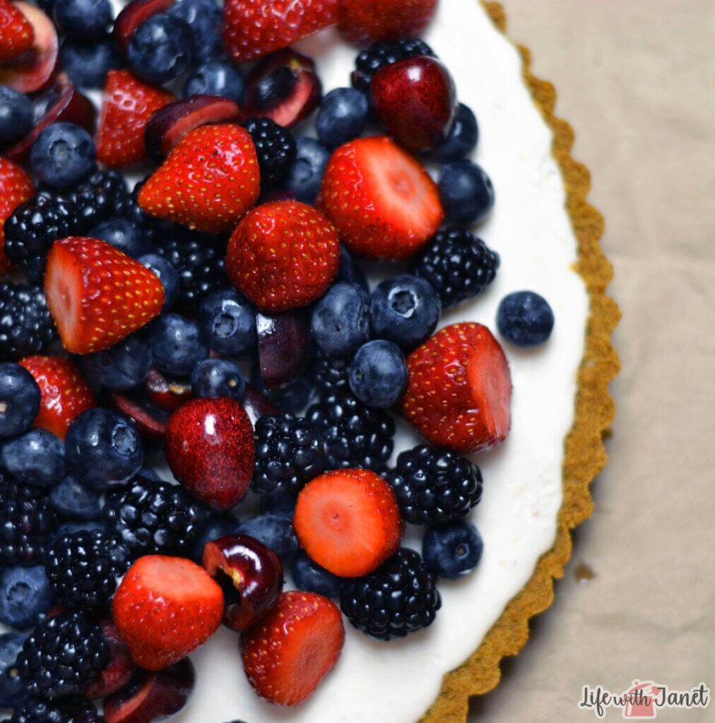 This vegan tart is refreshing & smooth with bursts of fresh fruit flavor, creamy lemon coconut whipped filling, and a crunchy salty graham cracker crust. Honestly, I think the best part was the coconut oil graham cracker crust. Delightful.