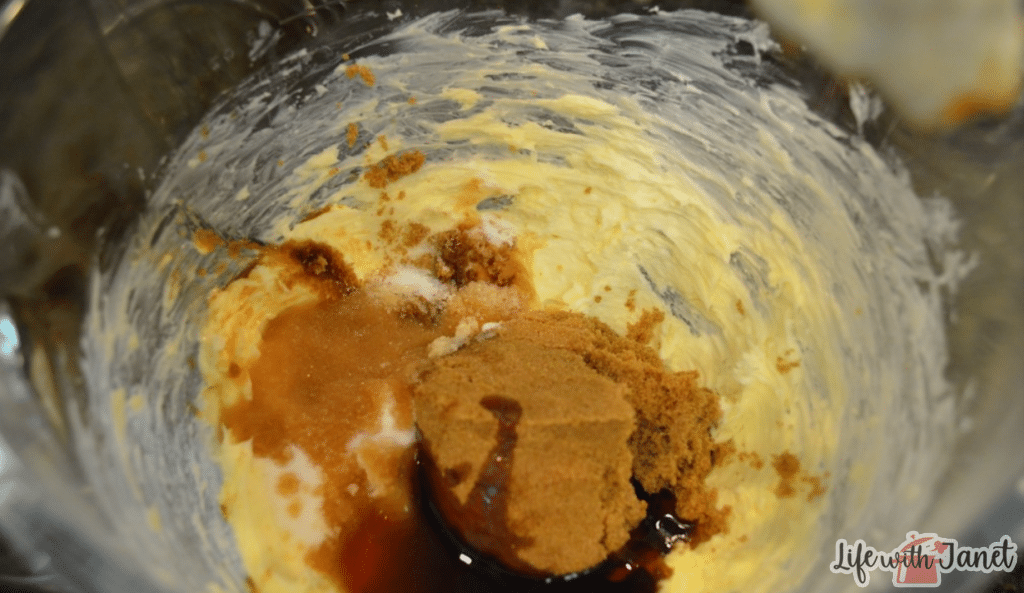 - Cream together butter, sugars, corn syrup, baking soda, salt, and vanilla.