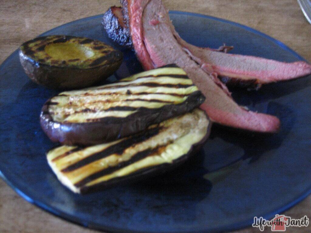 Then he carved it and we had a super delicious meal! We had grilled eggplant and grilled avocado with the brisket.