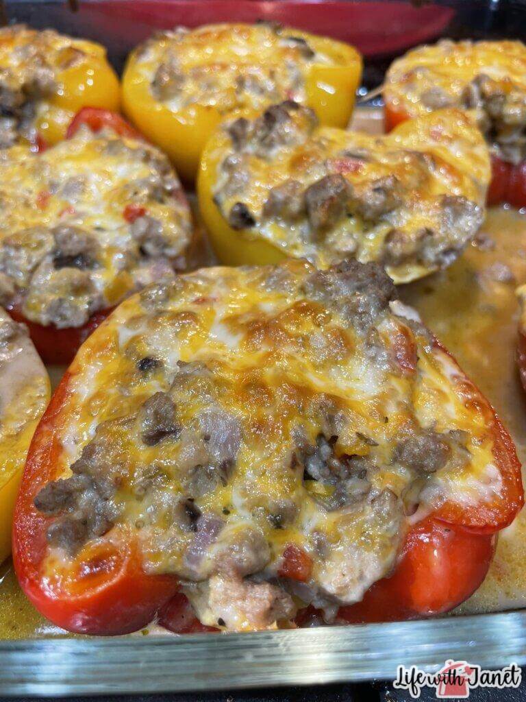 - Start placing the cheese slice at the bottom of the beef and cover it with more cheese slices. Repeat the process for the other two peppers and bake them at 400 degrees F for 25-30 minutes.