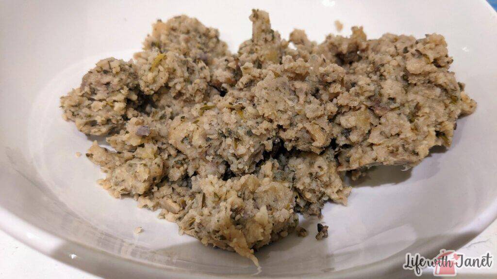 - Bread bowl: In a big mixing bowl, throw in your toasted low-carb bread and cornbread stuffing. Mix ’em up good.