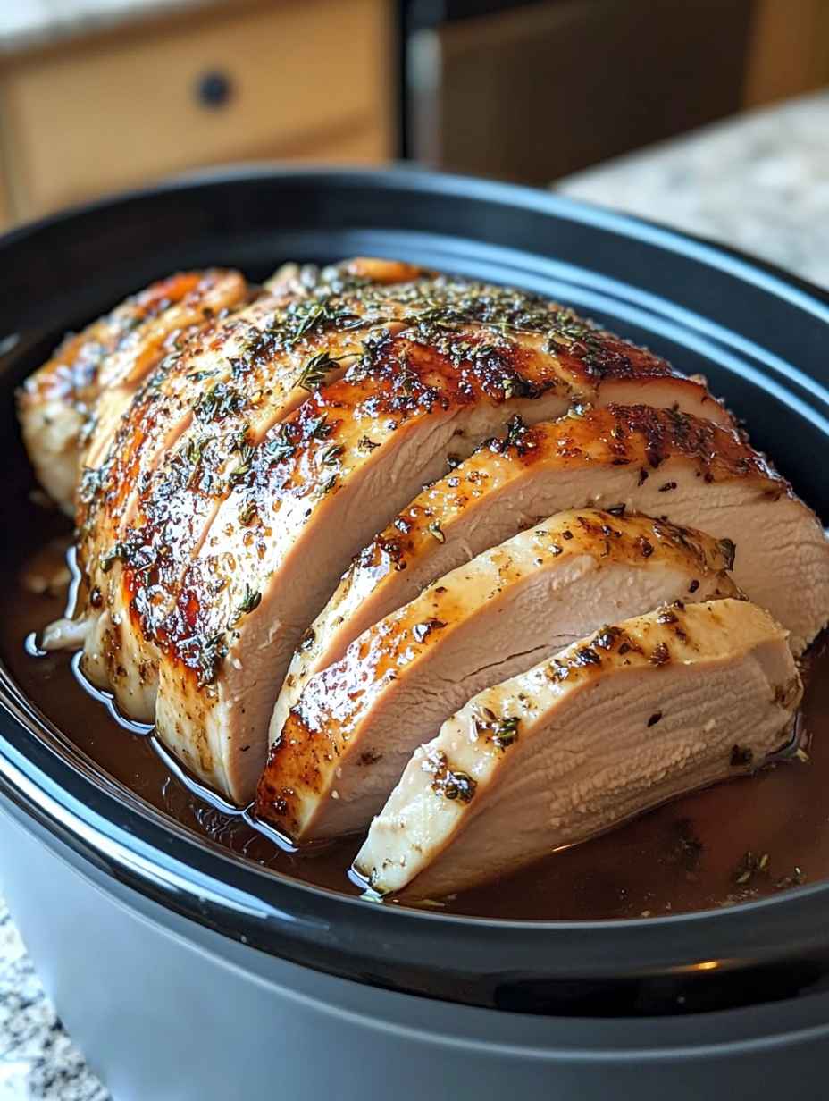 The marriage of sweet maple syrup with savory herbs isn’t just delicious—it’s transformative. As the turkey breast slowly cooks, it absorbs these flavors, resulting in meat that’s incredibly tender and infused with a subtle sweetness that elevates it beyond ordinary poultry dishes.