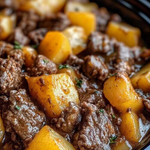 The best thing about this recipe is that everything cooks together in the slow cooker, merging into a wonderfully cozy and satisfying meal. Just brown the beef, chop some onions and garlic, layer in sliced potatoes, and let it simmer away. In just 6-7 hours, dinner is ready!