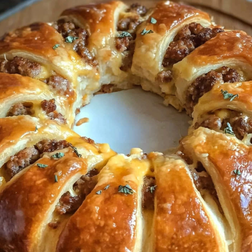- crescent roll dough – creates that gorgeous golden ring with minimal effort. The refrigerated tubes work perfectly here and save tons of time compared to making dough from scratch. Their buttery flavor complements the savory filling beautifully.