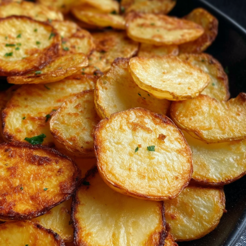 What makes these air fryer potatoes so great is how the thin slices crisp up perfectly on the outside while staying soft in the middle. You get that satisfying crunch in every bite without deep-frying or turning on the oven.