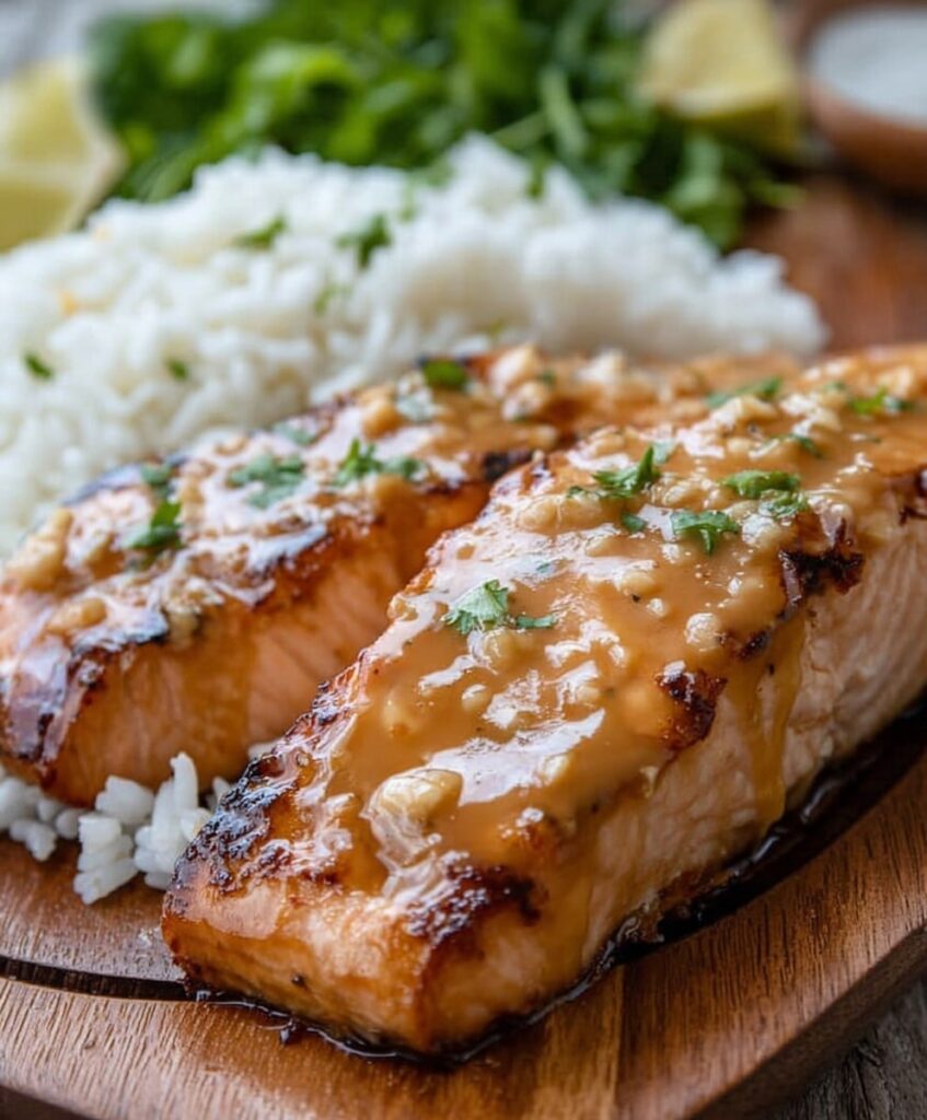 I brush half the sauce on the salmon before baking, then use the rest as a finishing sauce when it comes out of the oven. This gives you layers of flavor – some of the sauce caramelizes slightly in the oven while the fresh sauce on top stays bright and creamy.