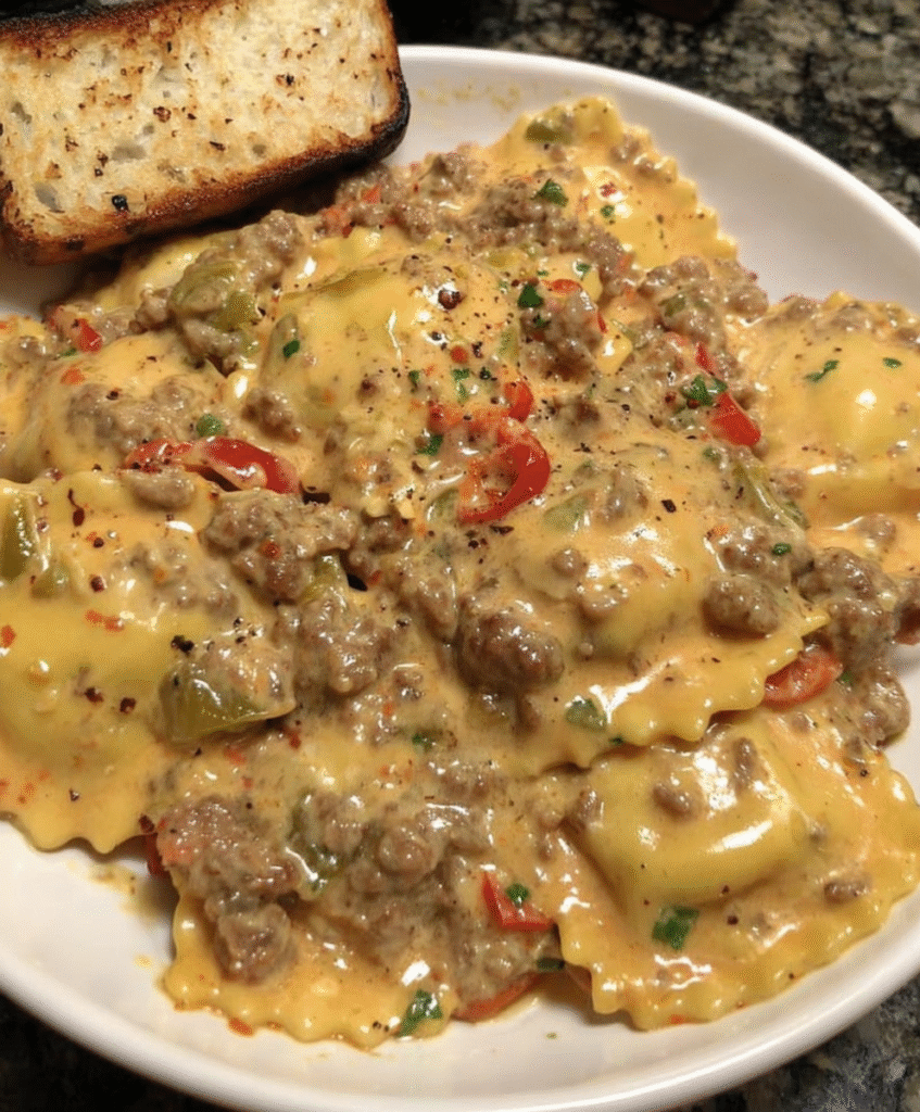 Spicy sausage, peppers, and garlic in a creamy Cajun-spiced Parmesan sauce, tossed with cheese ravioli – bold, satisfying, and ready in 35 minutes!
