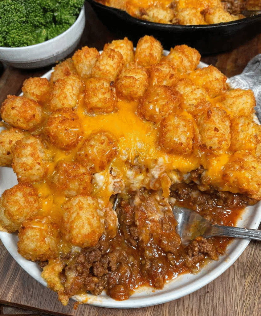 - Make ahead – cook the filling, assemble, and refrigerate. Add tots and bake when ready.