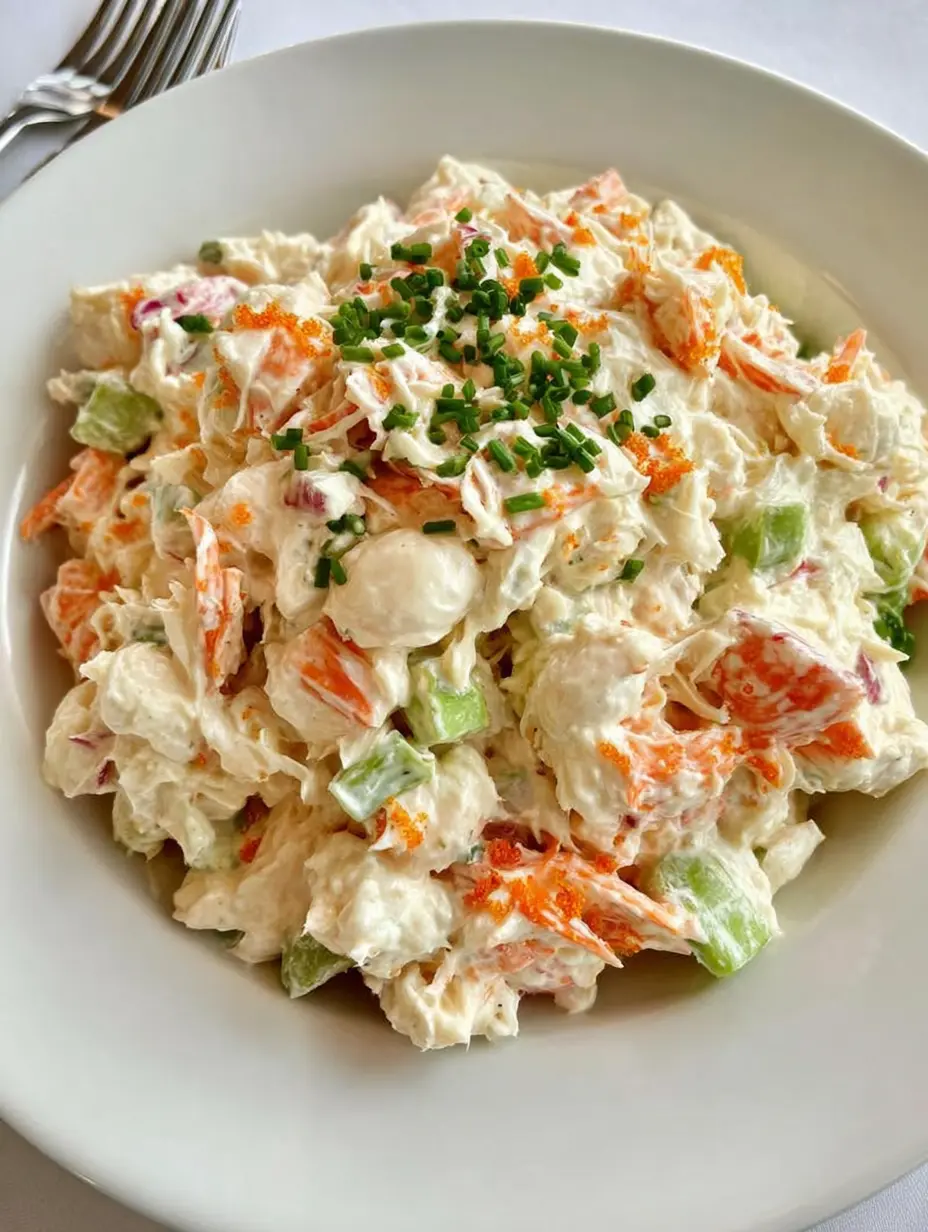Cold is crucial. Room temp seafood salad is nasty. Let it chill proper before serving.