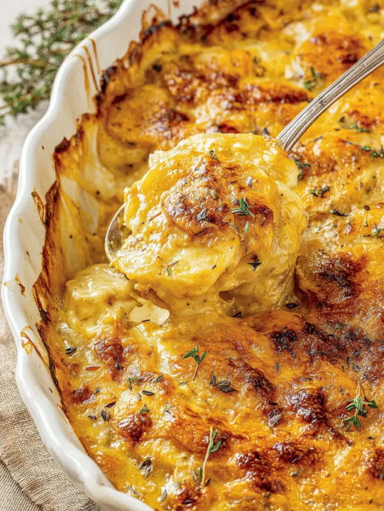 - Bake additional 30-45 minutes until potatoes are fork-tender in the center and top is golden brown with crispy cheese spots.