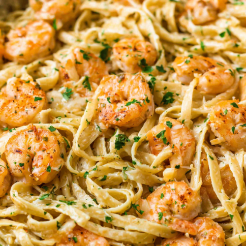 This creamy garlic shrimp pasta recipe is an elegant dish with big flavors! It’s so quick and easy, making it perfect for a weeknight dinner or a romantic date night.