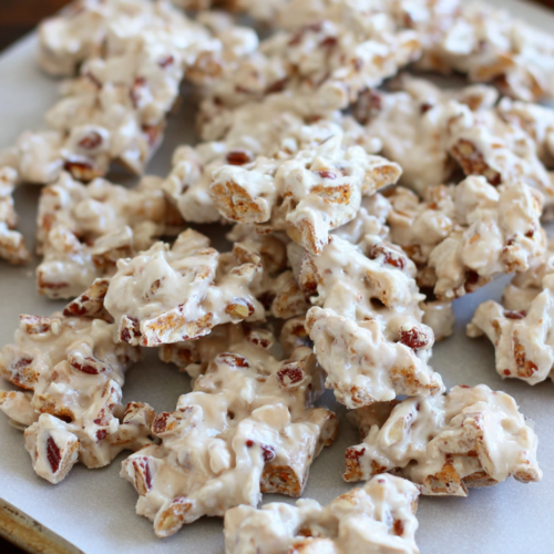 - pretzel sticks – you’ll break these up a bit before mixing them in. You can also use pretzel twists or rods, whatever you’ve got.