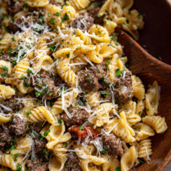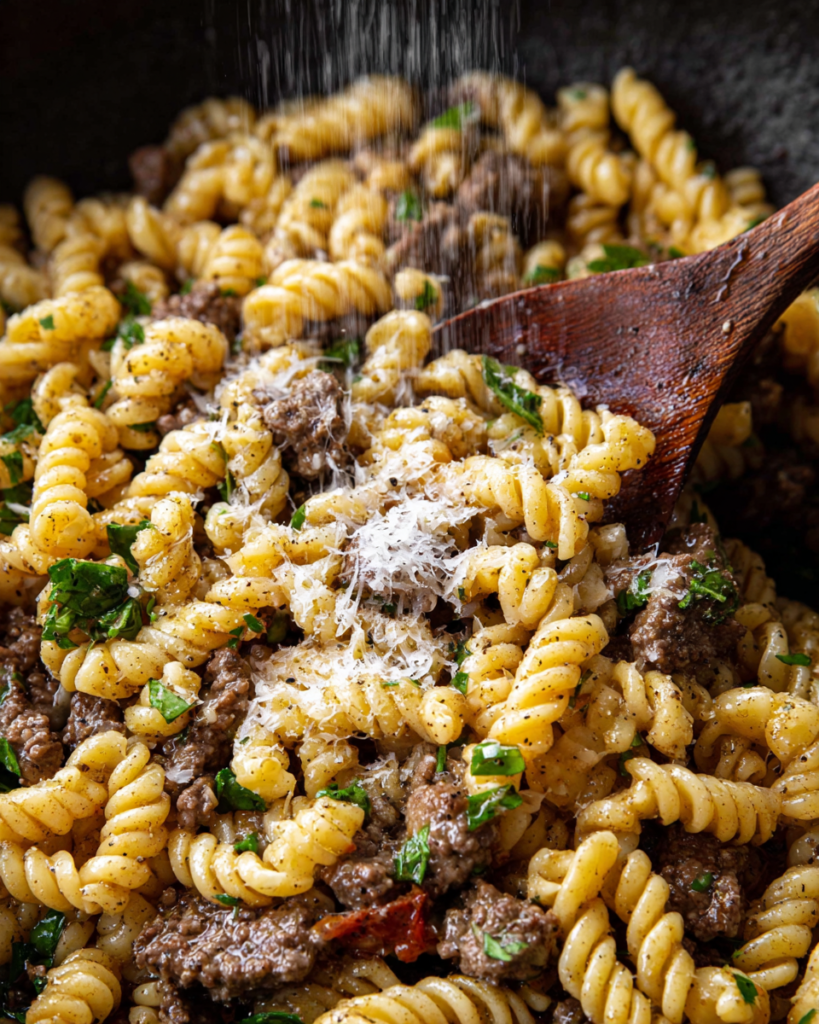 Okay, so I have this problem where I always buy ground beef with big plans — and then Tuesday night rolls around and those plans are gone. A few months back I had a pound of beef sitting in the fridge, zero motivation, and two kids asking what was for dinner. I almost just made plain buttered noodles. And then I thought — wait. What if I just combined the two? Ground beef, pasta, butter, garlic. One pot. Done. That was the night this recipe was born in my kitchen, and I have not stopped making it since.
