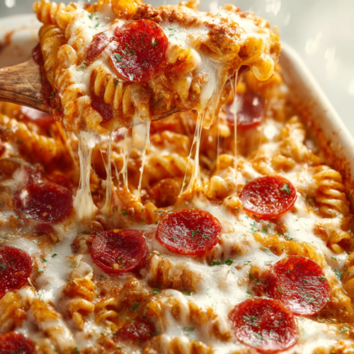 Here’s what you’re working with: a big, comforting casserole loaded with ground beef, Italian sausage, bell peppers, and onions, all tossed with penne in a seriously good sauce made from both marinara and pizza sauce. Then it gets buried under a blanket of whole milk mozzarella and topped with pepperoni before it goes into the oven. The result is bubbly, cheesy, and totally satisfying. And it’s genuinely simple to pull together on a weeknight. Budget friendly and family friendly — this one checks every box.