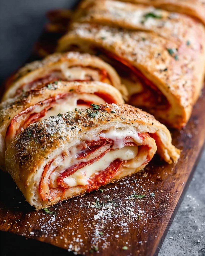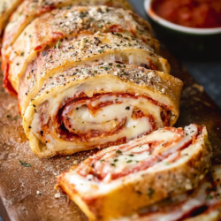 The best part? This recipe is basically a blank canvas. Pepperoni and provolone, ham and mozzarella, or a Philly cheesesteak situation with peppers and onions — you really can go wild with it. And the garlic butter spread on the dough before rolling? That’s the move. That’s definitely the thing that takes this from good to “I need to sit down for a minute.”