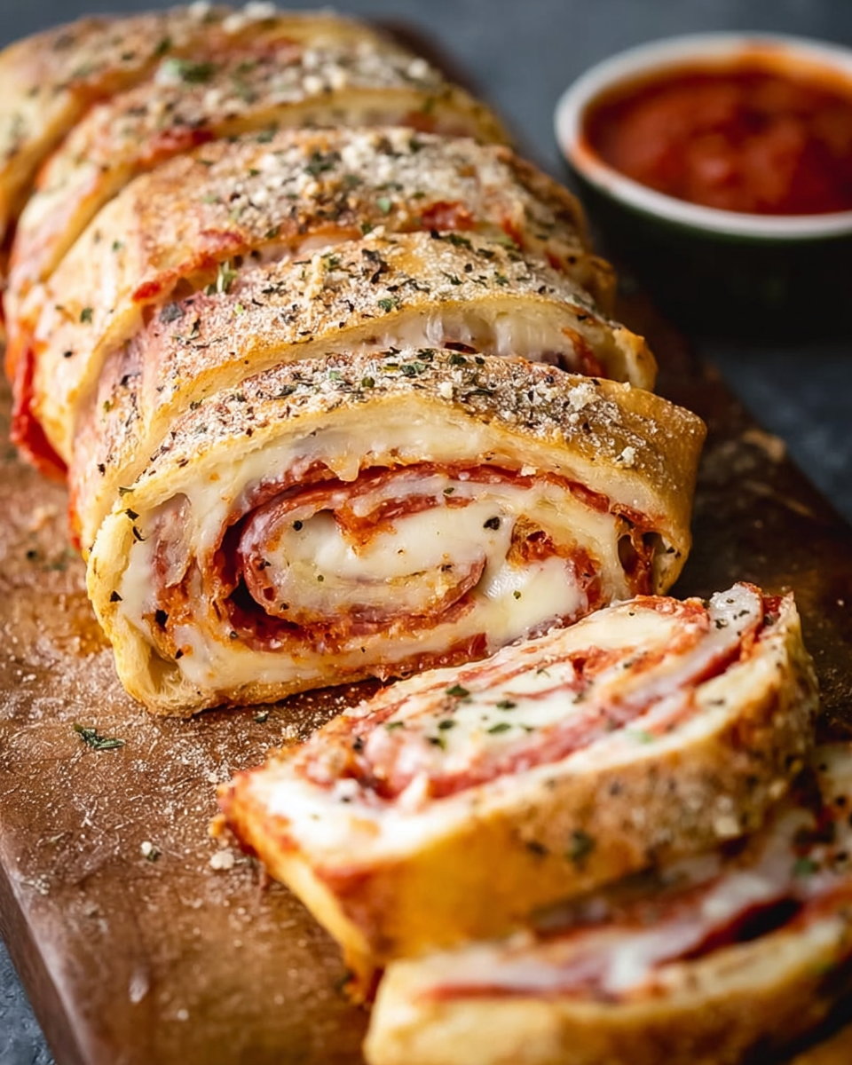 The best part? This recipe is basically a blank canvas. Pepperoni and provolone, ham and mozzarella, or a Philly cheesesteak situation with peppers and onions — you really can go wild with it. And the garlic butter spread on the dough before rolling? That’s the move. That’s definitely the thing that takes this from good to “I need to sit down for a minute.”
