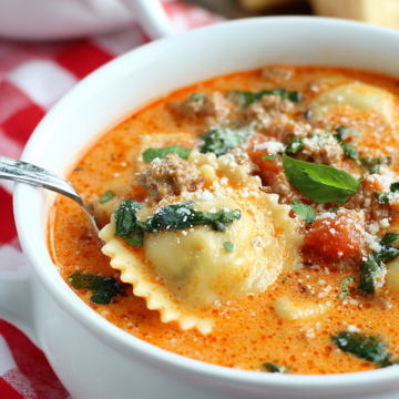 I am a huge fan of a good soup that eats like a full meal — and this one checks every single box. We are talking tender ravioli, savory sausage, and a rich, creamy broth that is absolutely loaded with flavor. It is one of those recipes that I make on repeat all fall and winter long because it is so simple to pull together and the whole family absolutely loves it. Serve it with some crusty Garlic Bread for dipping and you are in business!