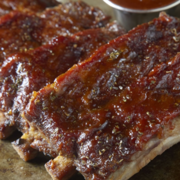 - Remove from oven and let ribs rest for 10 minutes. Slice between the bones and serve with extra BBQ sauce on the side.