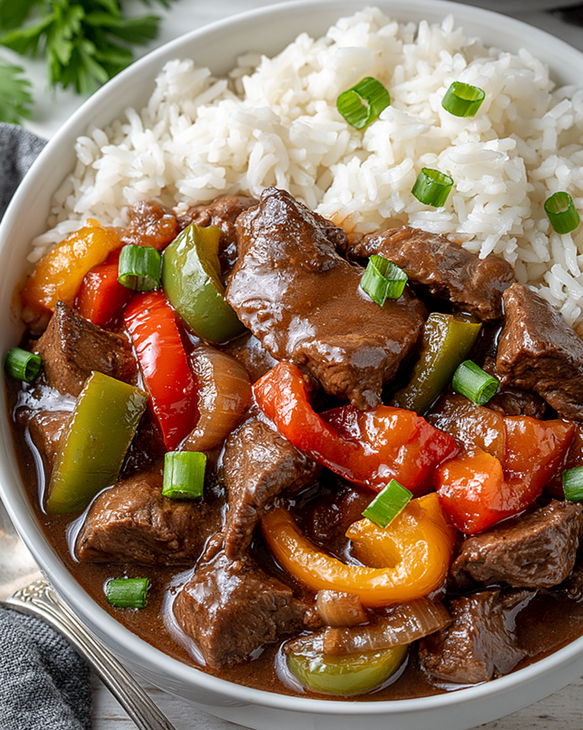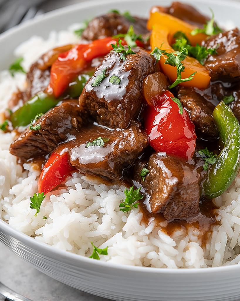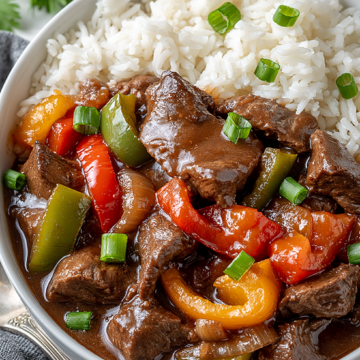 This easy Crock Pot Pepper Steak is a hearty, wholesome dinner that practically makes itself! Tender strips of beef slow-cooked with colorful bell peppers, onions, and a rich, savory sauce — then served over fluffy white rice. This one is a total crowd-pleaser and a guaranteed weeknight winner!
