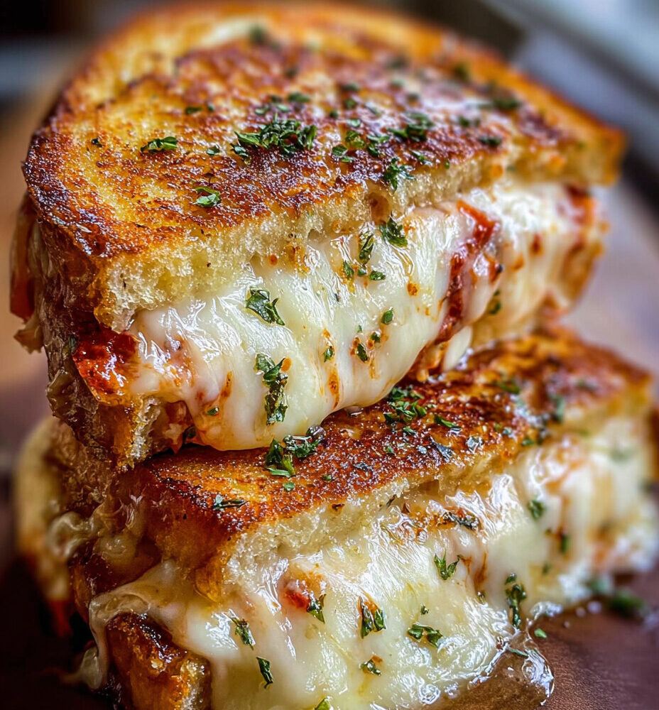 These Pizza Grilled Cheese Sandwiches have melted mozzarella, crispy pepperoni and a garlic parmesan butter spread on the outside! Ready…