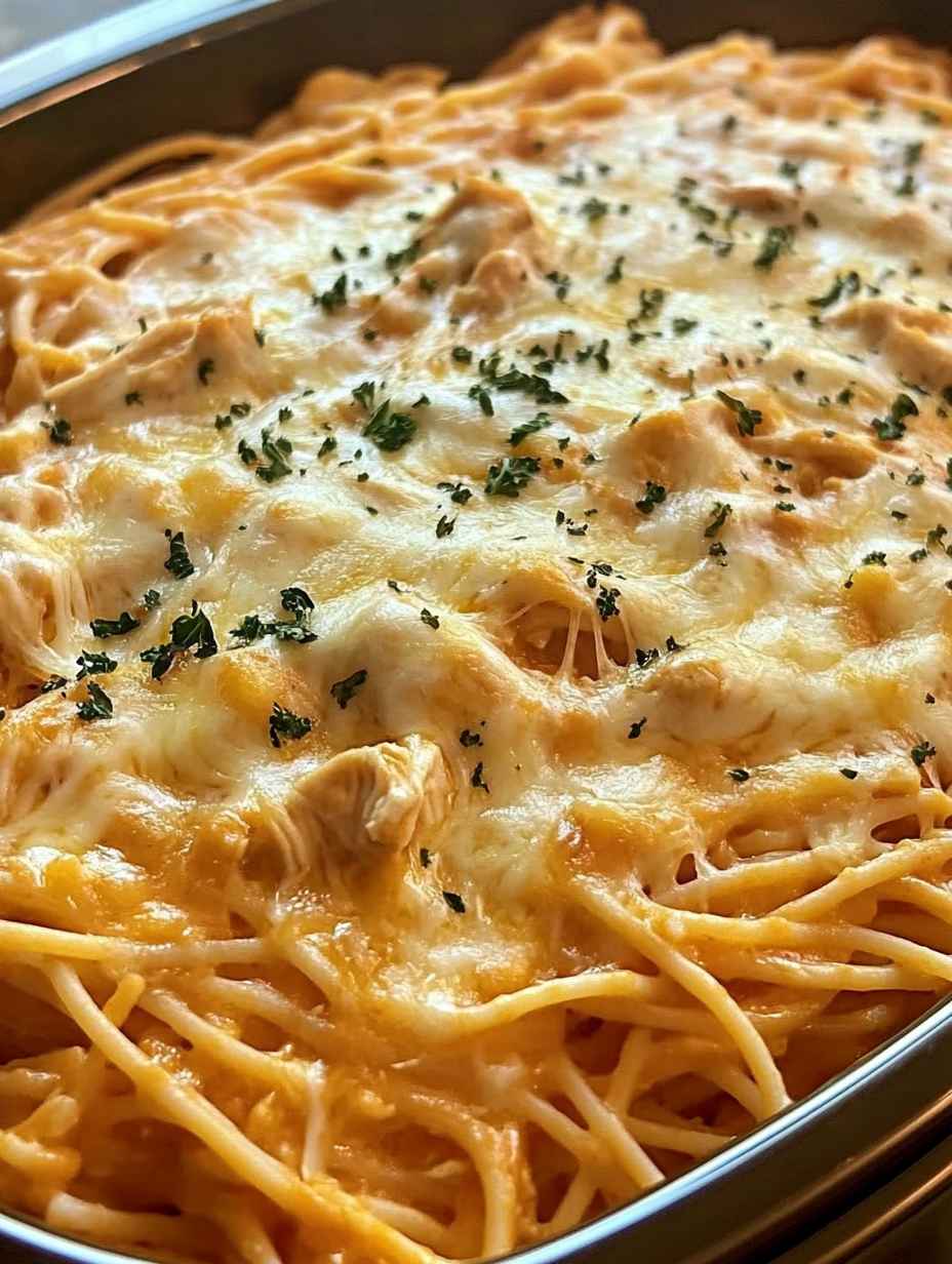 Slow Cooker Amish Cheesy Chicken Spaghetti