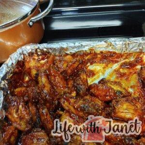 - Add the ingredients except for the BBQ sauce on the wings. Heat them in the oven for 50-60 minutes till they are brown and crispy. Now take them out and add them to a bowl.