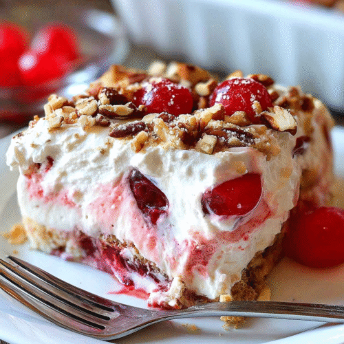 Refrigerate your Cherry Cheesecake Lush Dessert for at least 4 hours, or overnight, to allow the flavors to meld and the dessert to set.